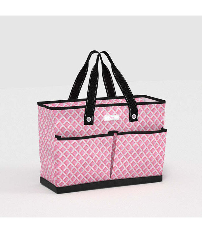 OUR LARGEST POCKET TOTE BAG. With 5 pockets in all, The BJ Bag is perfect for keeping you organized on the go. This durable, lightweight, structured bag is well-suited for multiple uses. Teachers and nurses love it for work. Town & Country called it "the beach bag you've always dreamed of." Moms rave about it being a great weekend bag or carry-on. For a smaller version, check out the Uptown Girl.